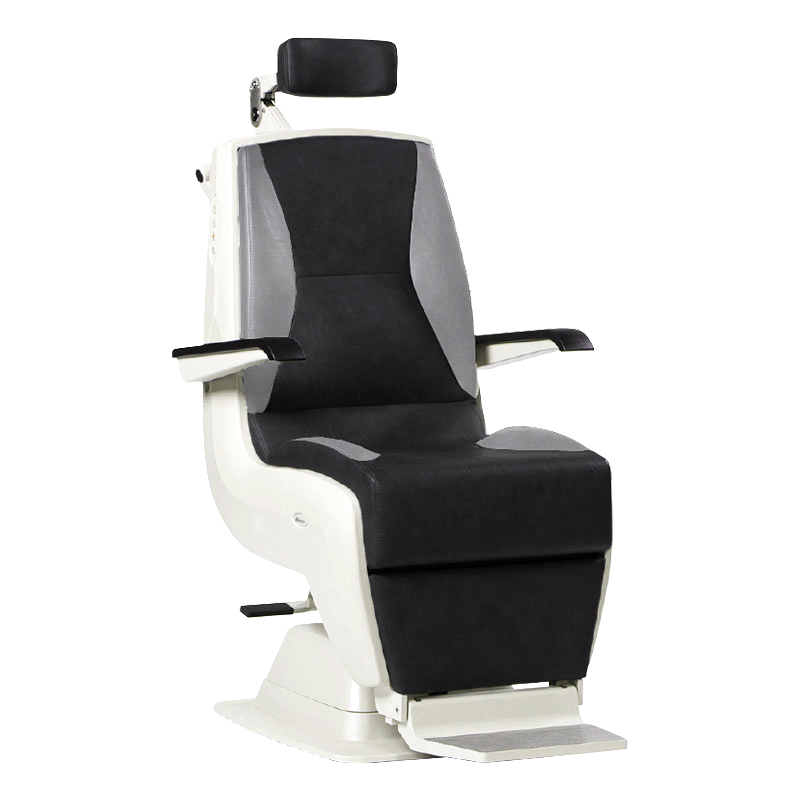 - Fingertip chair elevation and auto-return switches are conveniently located on each side of the eye exam chair back and on the corded foot control. A safety switch disables the examination chair reclining motion from curious fingers